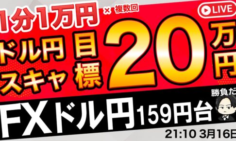 ドル円159円台!週末米イラン問題は大きな波乱なく、原油高は100ドル以下で推移、ドル買いは現状一服か?再度160円トライか?1分1万円×複数回で夜ライブトレードの目標20万円に挑戦!原油高株安再開で為替相場、ドル円クロ…