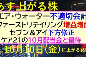 今日の引け後に出た材料で、明日7/9(火)に期待できる銘柄。水道耐震化の関連銘柄。アイシン株の売り出し価格が決定。ウエルシアとフジの決算と株価~最新の日本株情報。高配当株やデイトレ情報についてもお話しいたします。