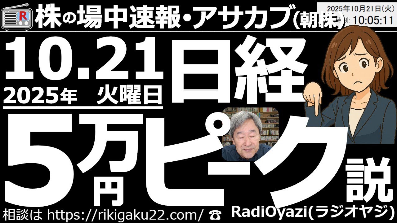 【朝株!(投資情報)】日経平均5万円ピーク説。本日午後、高市総理大臣誕生の瞬間、日経平均は5万円を超える可能性がある。ただ、5万円が「ピーク」となり、調整開始となるのでは?●注目銘柄:8227しまむら