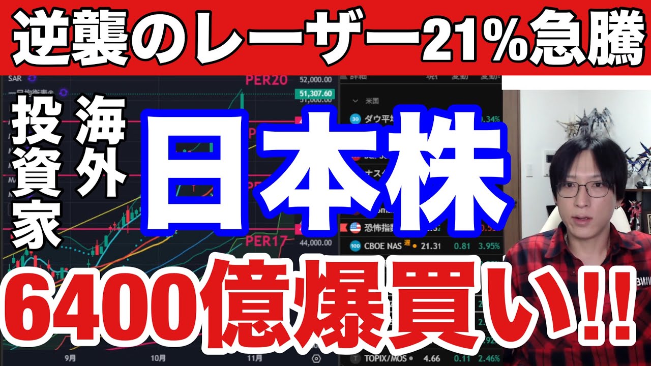 10/30【海外投資家が日本株6400億円爆買い‼️レーザーテック21%爆騰で日経平均の主役に】ドル円153円。米国株、ナスダック、半導体、AI関連銘柄強い‼仮想通貨ビットコイン反発。金先物急落。