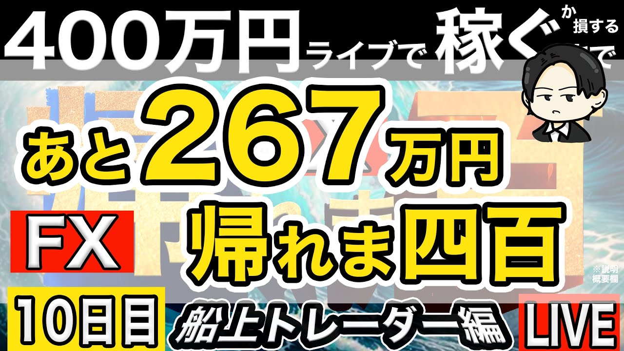 あと267万円稼ぐまで帰れない。11日目朝【FXライブで400万円稼げるまで帰れま四百~船上のトレーダー編】9:30
