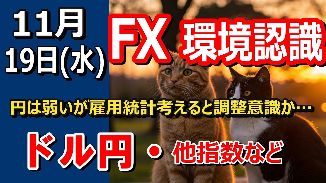 【TAKA FX】円は弱いが雇用統計考えると調整意識か… ドル円他各通貨の環境認識解説。各種指数、GOLDなど 11月19日(水)