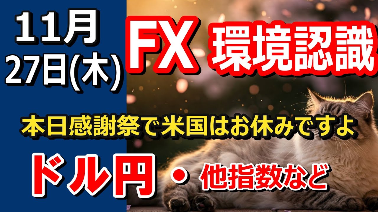 【TAKA FX】本日感謝祭で米はお休みですよ ドル円他各通貨の環境認識解説。各種指数、GOLDなど 11月27日(木)