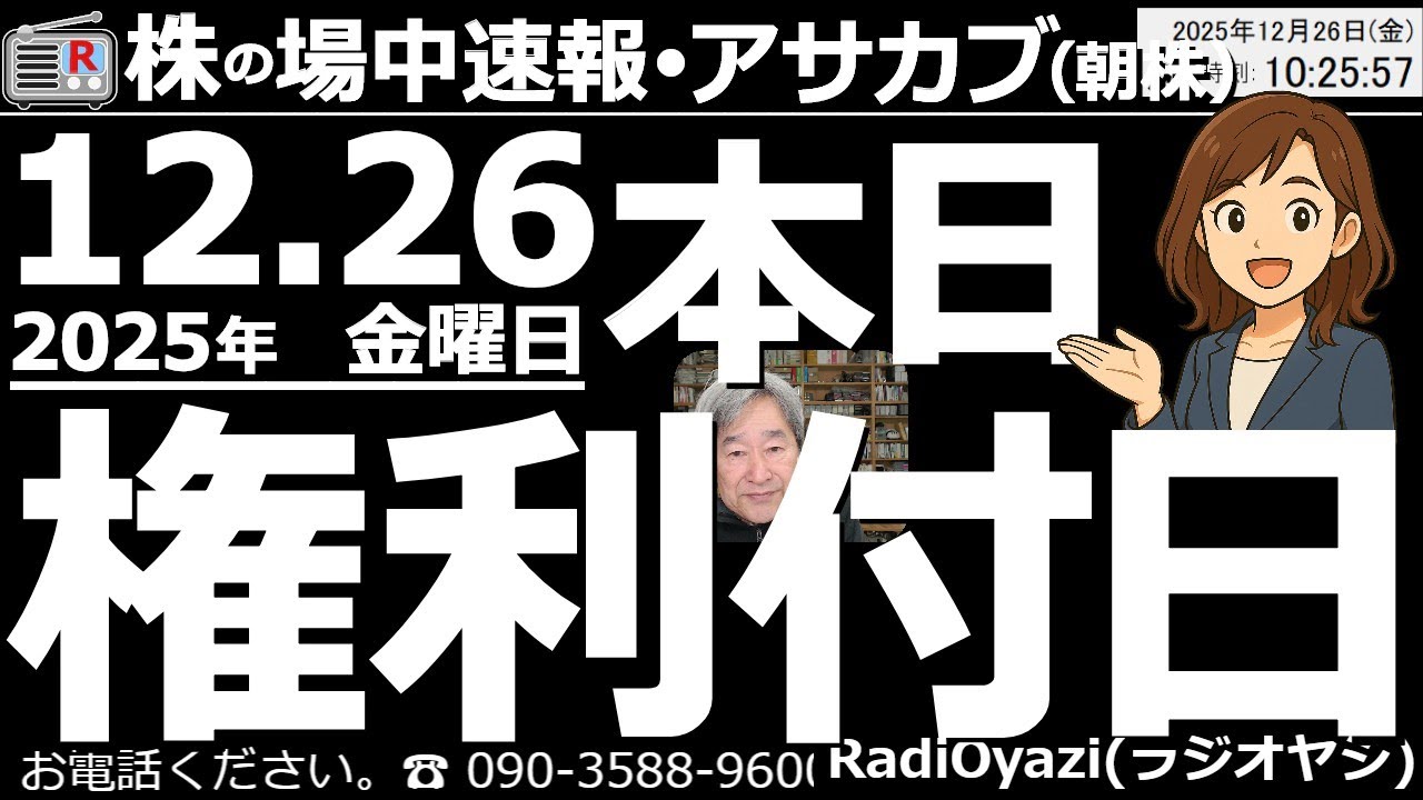 【朝株!(投資情報)】本日が「朝株!」最終配信です。1年間のご視聴ありがとうございました。大晦日(12/31)には「年越しライブ」を配信します。来年は1/5から動画再開。年末年始は「短信」も配信予定。