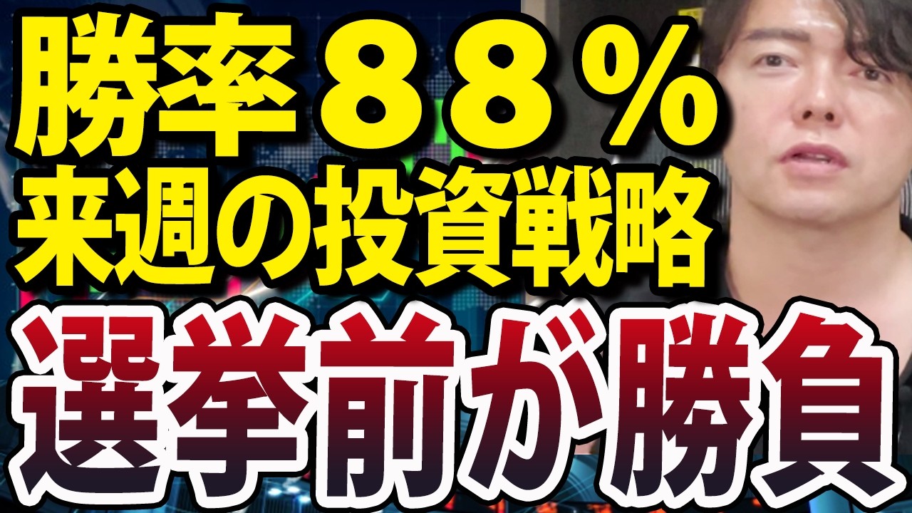 今日の動画では衆議院解散総選挙で日本株の先物が爆上げしているのあか、勝率88%の驚異のデータが出現したため、その検証と独自の視点で解説しました。