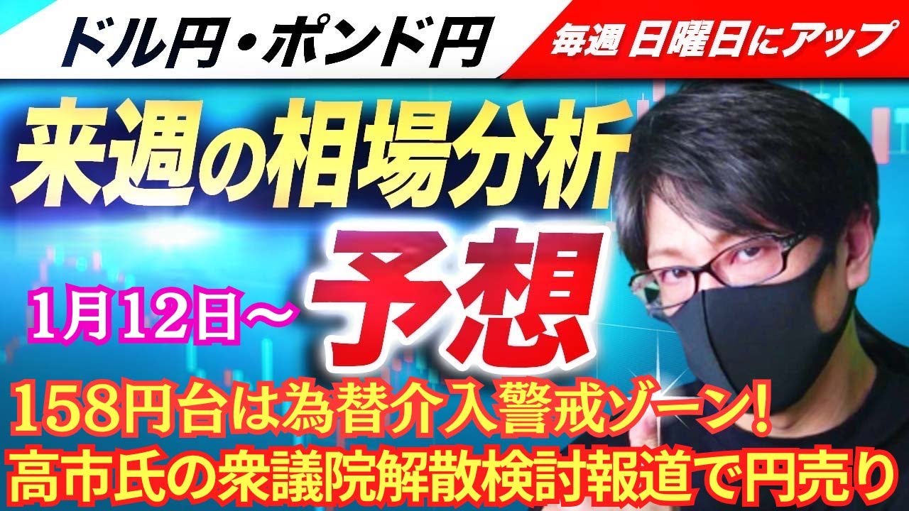 【FX来週の相場分析と予想】ドル円 高市氏が衆院解散検討の報道で円売り展開で一時158円台まで上昇|デイトレ・スキャルピング!ドル円・ポンド円、週間為替展望(1月12日~1月16日)