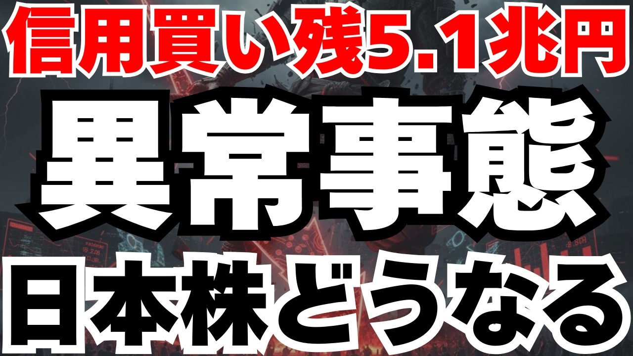 【動画概要】2026年1月、信用買い残が5兆1161億円と19年7か月ぶりの高水準に到達。日経平均5万3千円の史上最高値圏で、信用倍率5.61倍という異常な投機熱が発生し、ライブドアショック直前と酷似した危険な市場構造が形成されています。