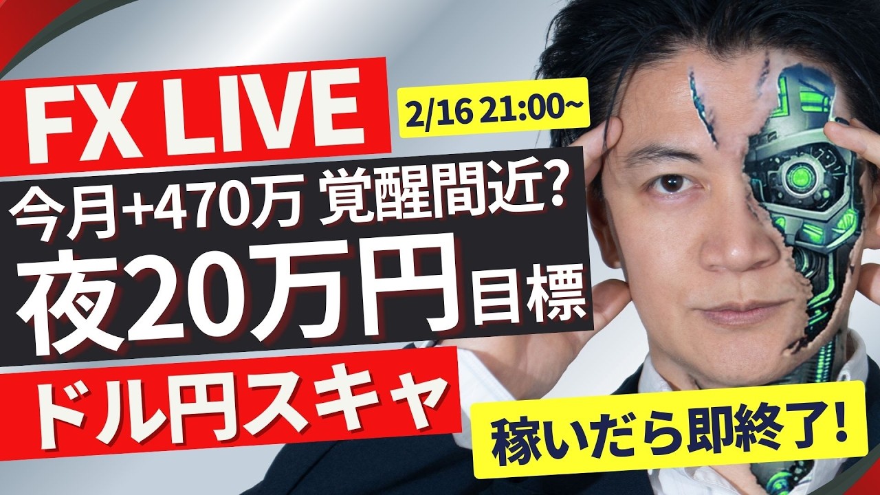 現在本日決済+88万円、配信で+100万円/日を達成したいです!ドル円クロス円は再び上値が重い、円高止まるのか?一緒にトレード頑張りましょう!連勝続いているので勝ちたいです!2026年2月17日(火) 1分1万円×複数回で【夜配信の利益20万円】を目指すガチスキャルピング。