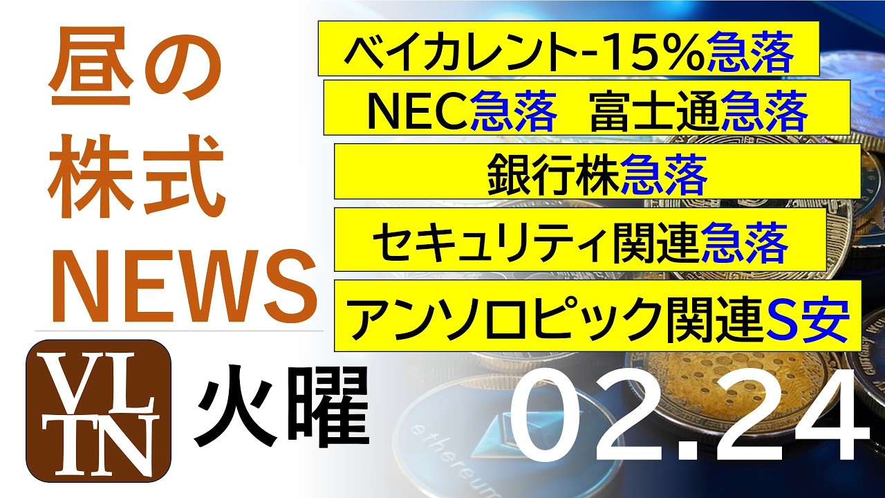 ベイカレント-15%急落。NEC急落。富士通急落。銀行株急落。セキュリティ関連急落。アンソロピック関連S安発生!2026年2月24日(火)~明日上がる株最新の日本株情報。高配当株の株価やデイトレ情報~