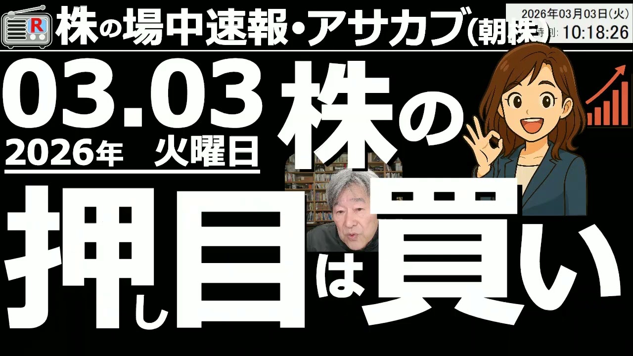 【朝株!(投資情報)】録画中に日経が57,000円を割り込み、56,600円付近まで下落した。アメリカも時間外で先物が下げており、にわかにリスクオフムードが高まっている。株も指数も安値は買いチャンス。