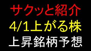4/1(水)上がる株予想 ※注意※訂正あり