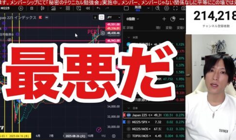 10/22【高市首相誕生で日経平均下落開始か⁉下落サイン見逃すな‼】最悪だやっちまった。日経レバ需給悪化で日本株ボーナス終了⁉ドル円151円。米国株、ナスダック、半導体株上昇。仮想通貨ビットコイン下落