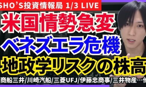 【米国×ベネズエラ情勢…国際情勢悪化でも株は上がる理由】ANA/商船三井/日本郵船/川崎汽船/三菱UFJ/伊藤忠商事/三井物産/住友商事/三菱地所/東京海上HD/三井住友FG/レーザーテック/AGC