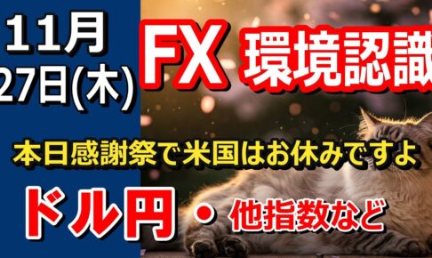 【TAKA FX】本日感謝祭で米はお休みですよ ドル円他各通貨の環境認識解説。各種指数、GOLDなど 11月27日(木)