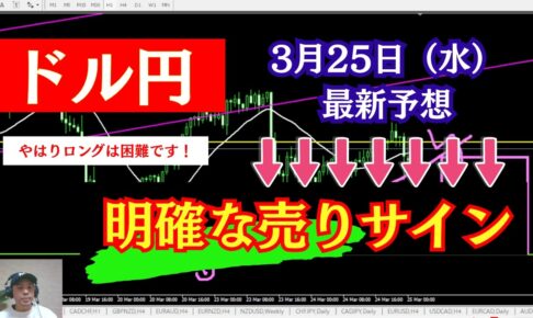 【FXドル円最新】ロング困難? 明確な売りサインが出ています。 2026年3月25日(水)