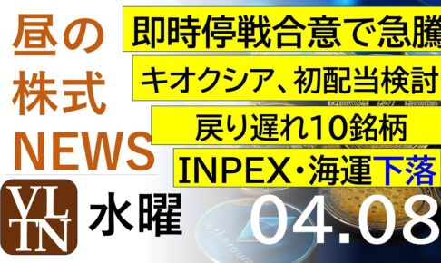 即時停戦合意で急騰。キオクシアが初配当検討。戻り遅れ10銘柄。INPEX・海運下落。2026年4月8日(水)~明日上がる株最新の日本株情報。高配当株の株価やデイトレ情報~★YouTubeメンバーシップへの参加リンク ◆メ…